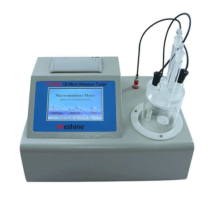 Karl Fischer Instrument on klassinen kemiallisen analyysin titrausmenetelmä. Se käyttää kulometristä titrausta tai tilavuustitrausta veden jäämien määrittämiseen näytteistä. Sen keksi saksalainen kemisti Karl Fisher vuonna 1935. Nykyään titraus tapahtuu Karl Fischerin automaattisella titraattorilla.Weshine® Kehitetty Karl Fischer -instrumentti (KF-titraattori) esittelee kompaktin KF-kulometrin luotettavan suorituskyvyn, yksinkertaisen käytön ja tilaa säästävän rakenteen. . Tarkka tulos on 1 ppm - 5 % vettä. Jokaisella käyttäjällä voi olla jopa 4 pikakuvaketta 5 analyysimenetelmää. Weshine® Karl Fischer Instrumentin avulla käyttäjä voi suorittaa kosteusmittauksen painamalla painiketta! Ota yhteyttä saadaksesi lisätietoja Weshine Karl Fischer Instrumentin käämitysvastustestauksesta.